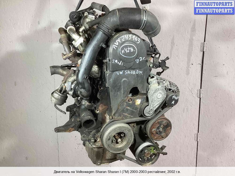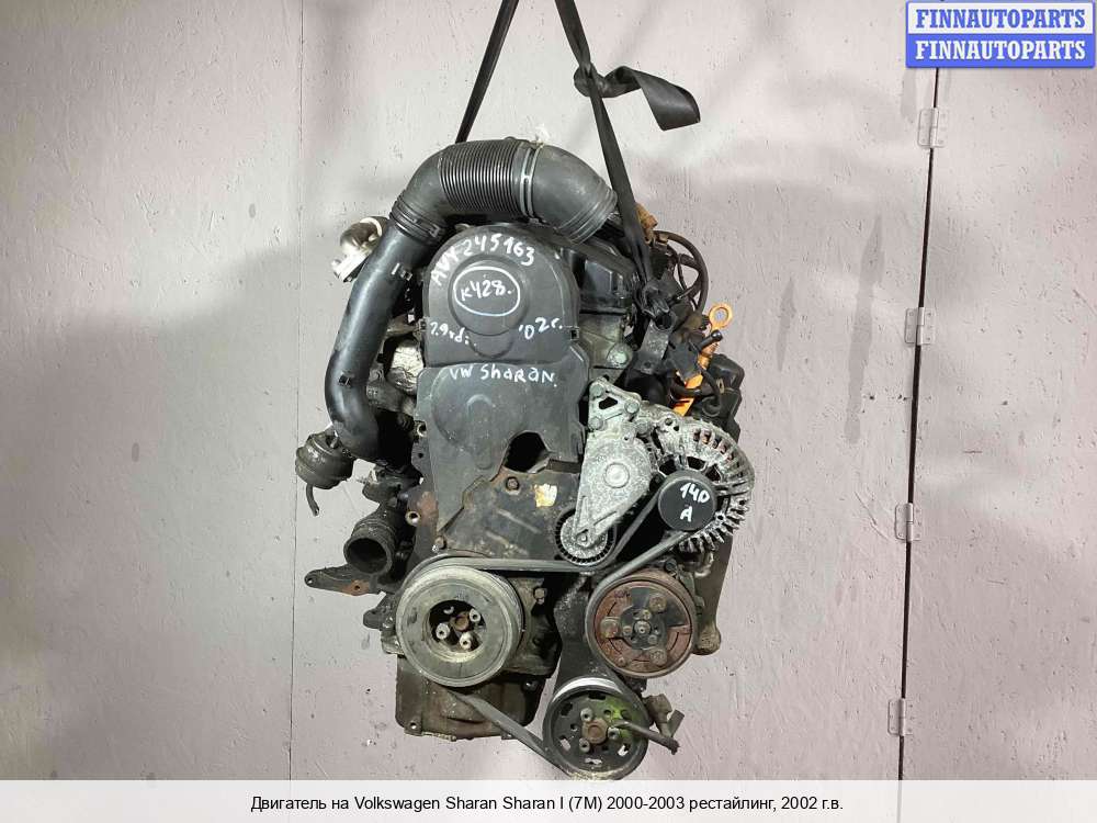 2002; Дизель; 1.9; AUY, TDI; Минивэн; ; серебристый; 2002, 1.9л, Дизель, TDI, AUY, Б/Н, 1232236, 1232231, 3M216006AA, Минивэн, серебристый, Фото не актуально, с запчасти отделены: Турбина, ТНВД, Маховик, Генератор, Компрессор кондиционера, Насос гидроусилителя руля (ГУР), Коллектор впускной, Форсунка топливная, Форсунка топливная, Форсунка топливная, Форсунка топливная, Натяжитель приводного ремня, Б/Н | - , прокручивается, состояние ГРМ - нормально, поддон - нормально, клапанная крышка - нормально, эмульсия - нет, скол кронштейна,